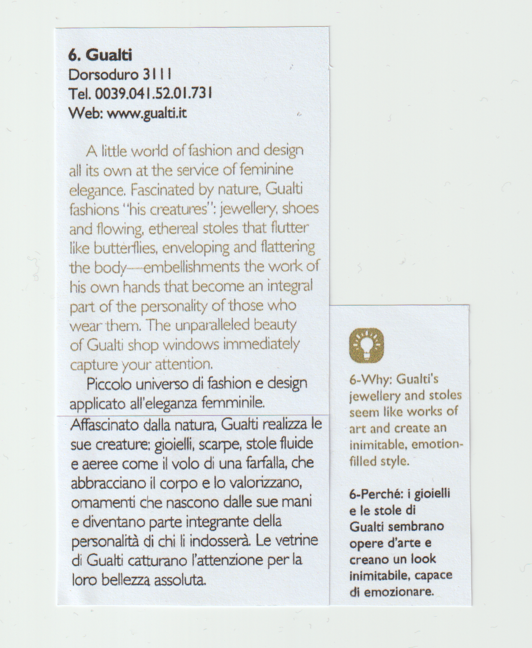 ¡No os perdáis la página web : www.gualti.it ! y… ¡visitad su perfil en facebook : http://www.facebook.com/gualti.venezia