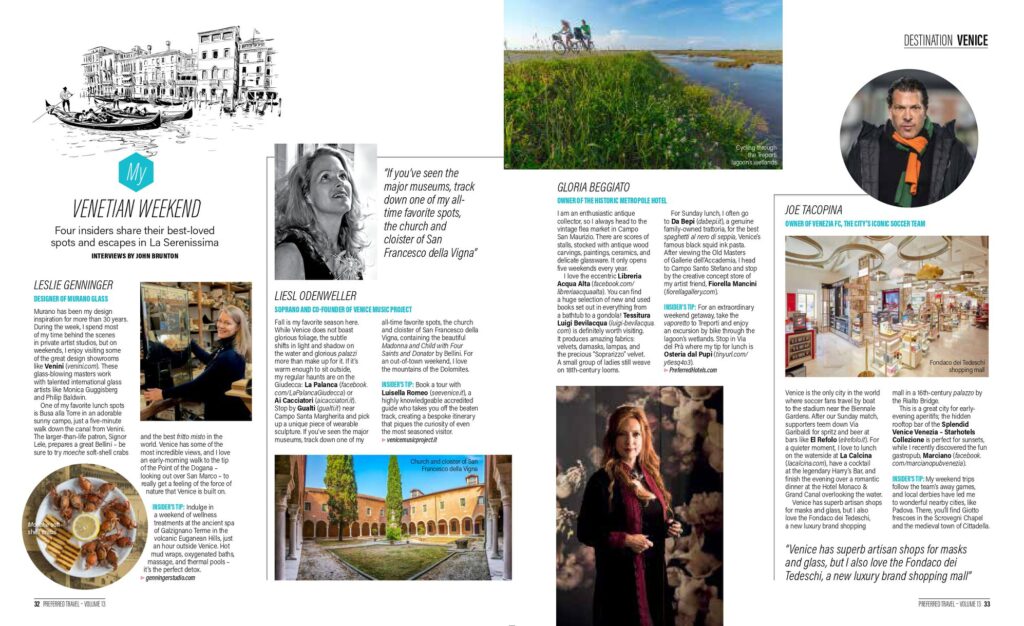 En la mágica Venecia todo es posible. Creo que me encontraría perdido en cualquier otra ciudad más grande. Yo me encuentro en sintonía y simbiosis con el ambiente de la ciudad. Antes de llegar a aquí me sentía como encarcelado. Lamentablemente en los últimos tiempos Venecia se ha vendido al consumo de masas y ya queda muy poco de aquel trabajo artesanal, por el que se hizo célebre.
