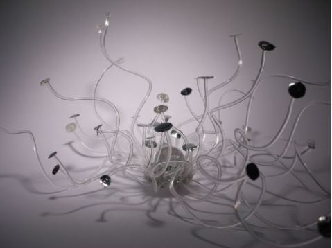 Cinque creativi del “Made in Venice” Tra gli oggetti di design anche le scenografiche sculture da indossare di Gualti (1-30 giugno): volumi intorno al collo e ai polsi che rivelano i dettagli di una natura oltre l’immaginazione in un gioco tridimensionale di luci e trasparenze, colori e movimenti.