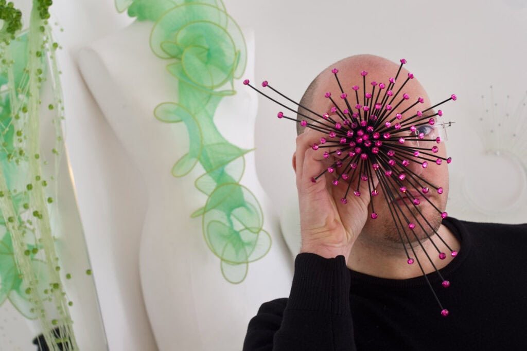 Jewels and headwear that are born in a vision before emerging from the hands of Gualtiero Salbego and becoming genuine sculptures to wear. Gioielli e copricapi che nascono dalle visioni prima ancora che dalle mani di Gualtiero Salbego e diventano vere e proprie sculture da indossare.