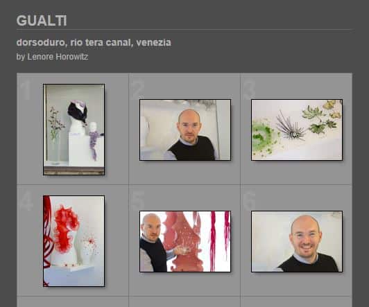 Sì lo so, questa “spensierata” passeggiata in Dorsoduro riserva inaspettate sorprese e sono sempre più convinta che Venezia rimane un avamposto di originalità. Nei pressi di campo Santa Margherita, vicino al Ponte dei Pugni, non può passare inosservata l’affascinante e sofisticata vetrina di Gualti, preparatevi ad un’escalation di emozioni. Si entra in un atelier interamente bianco e si ha la sensazione di muoversi in un’atmosfera rarefatta, quasi di sospensione temporale, come immergersi nei fondali di un reef corallino. emergono favolose attinie, anemoni di mare in un tripudio di colori e i loro lunghi pistilli che danzano fluttuanti seguendo le correnti marine. Sono invece le favolose creazioni di Gualtiero Salbego in arte Gualti: bracciali, orecchini, spille, gorgiere e anche meravigliose stole. Emozioni intense che giocano con le linee, la luce, i colori, i movimenti, scenografici e surreali gioielli-scultura da indossare. Desidero condividere con voi l’indirizzo di questo magico limbo: Dorsoduro, Rio Terà Canal 3111.