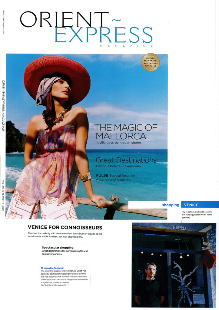 The eccentric designer known simply as Gualti has opened a boutique showcasing innovative jewellery that has become a firm favourite with chic Venetians. These sensuous, handmade designs are crafted from a mysterious, maleable material.