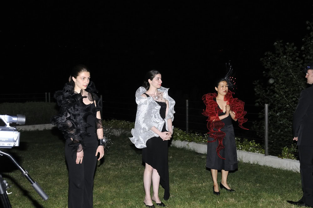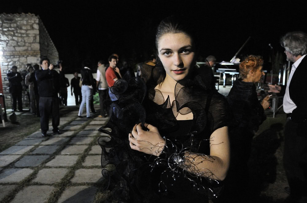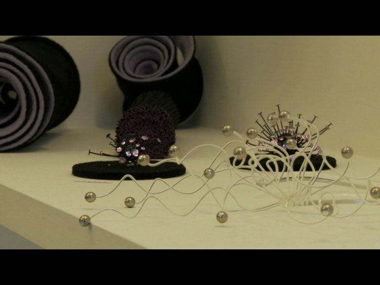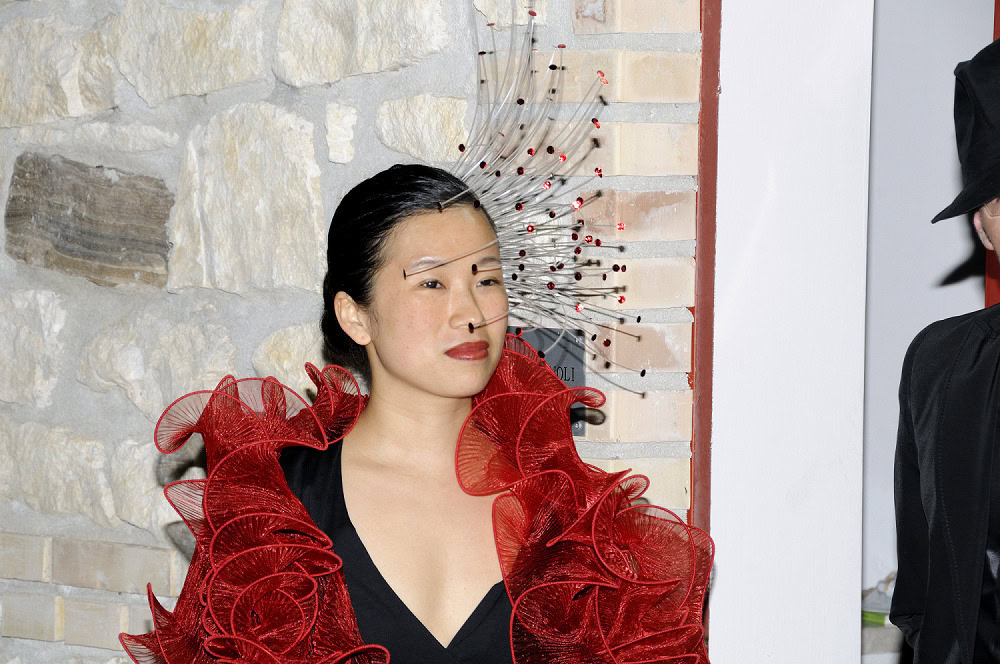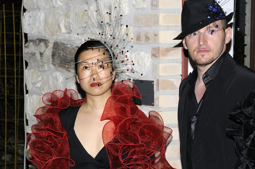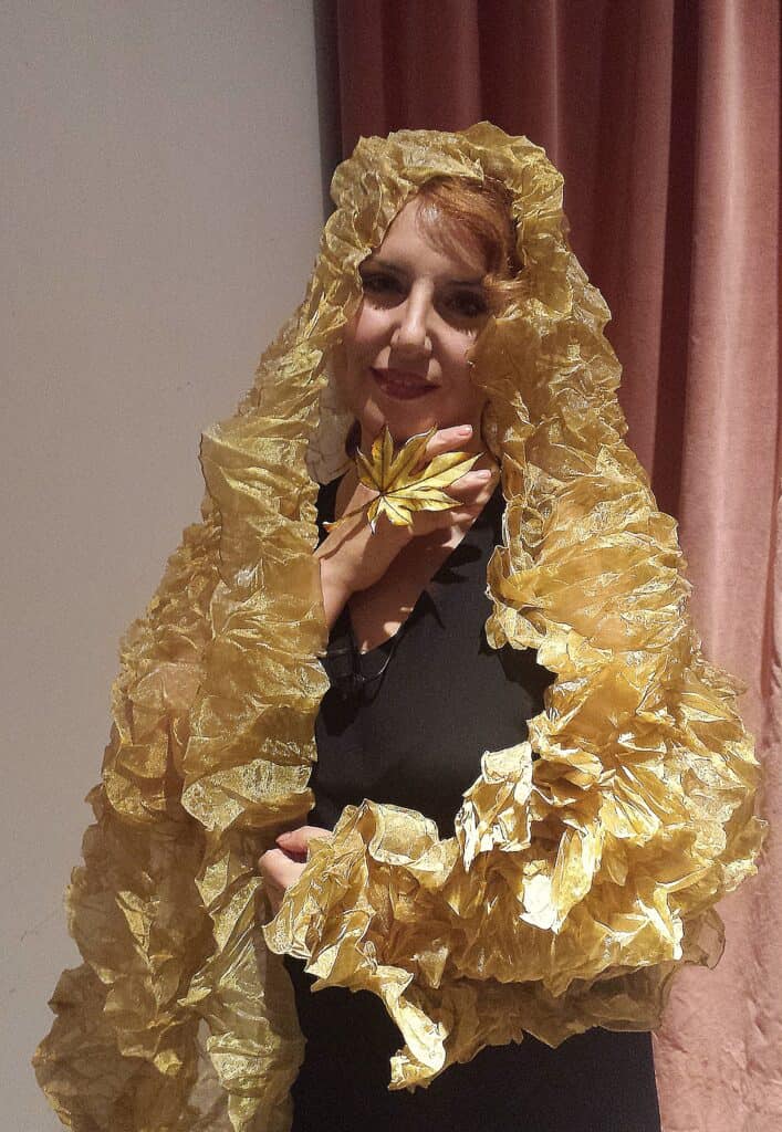 Gualti with ‘sculpted’ shawls and neck scarves, and one off jewellery and head pieces.