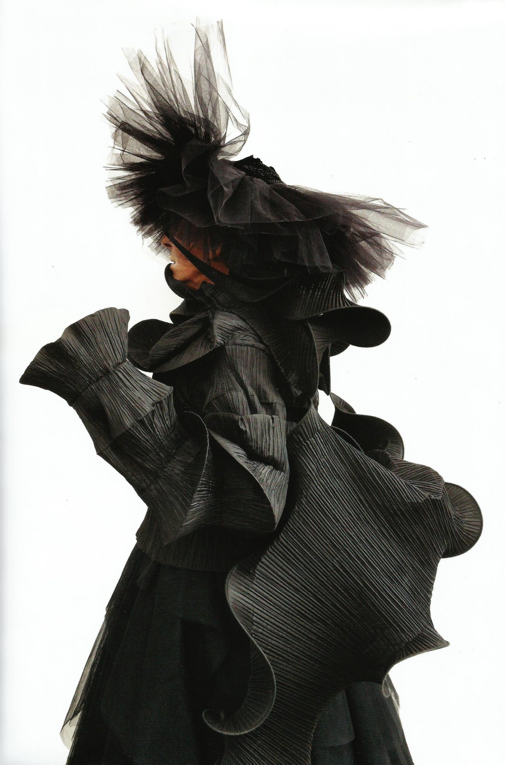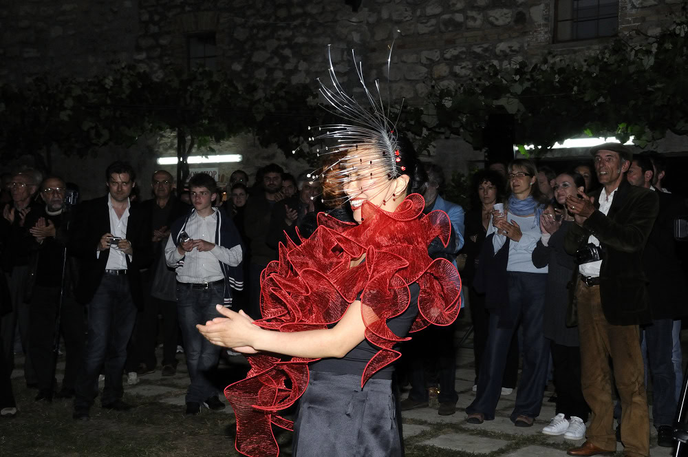 Un impeto creativo che non si ferma agli accessori ma dona vita anche ai tessuti: come bozzoli di crisalide, taffetร , seta, organza e lana cotta assumono le forme di sciarpe, stole e giacche che avvolgono chi le indossa con unโeleganza dal grande impatto.