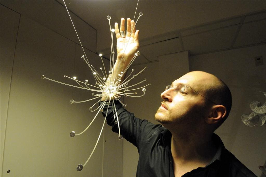 Inventing jewels is a little like drawing dreams: their shapes sparkling with lights and reflected colours spring from creativity which for Gualti is natural and stem from the marvels of the unconscious. Gualti lends the greatest freedom to fantasy but he always dreams on the fact that his “wearable sculptures”, very precious apparel, must adhere to a person. The young artist, in point of fact, considers each “piece” an “extension of the body” or “a poem to enrich the treasure box of dreams”.