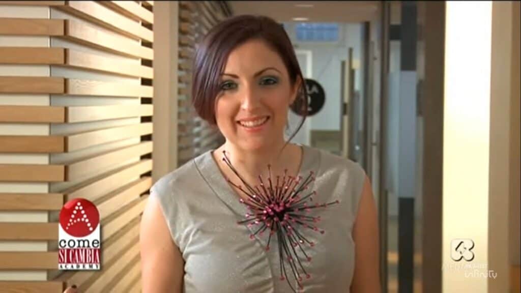 Nel piccolo e curatissimo atelier di rio Terร Canal, a pochi passi da campo Santa Margherita, le sue creazioni appaiono come vere esplosioni di luce, che nascono da un cuore di vetro per poi dipanarsi in filamenti flessibili e trasparenti che vanno a formare gioielli che nulla hanno a che vedere con la bigiotteria.