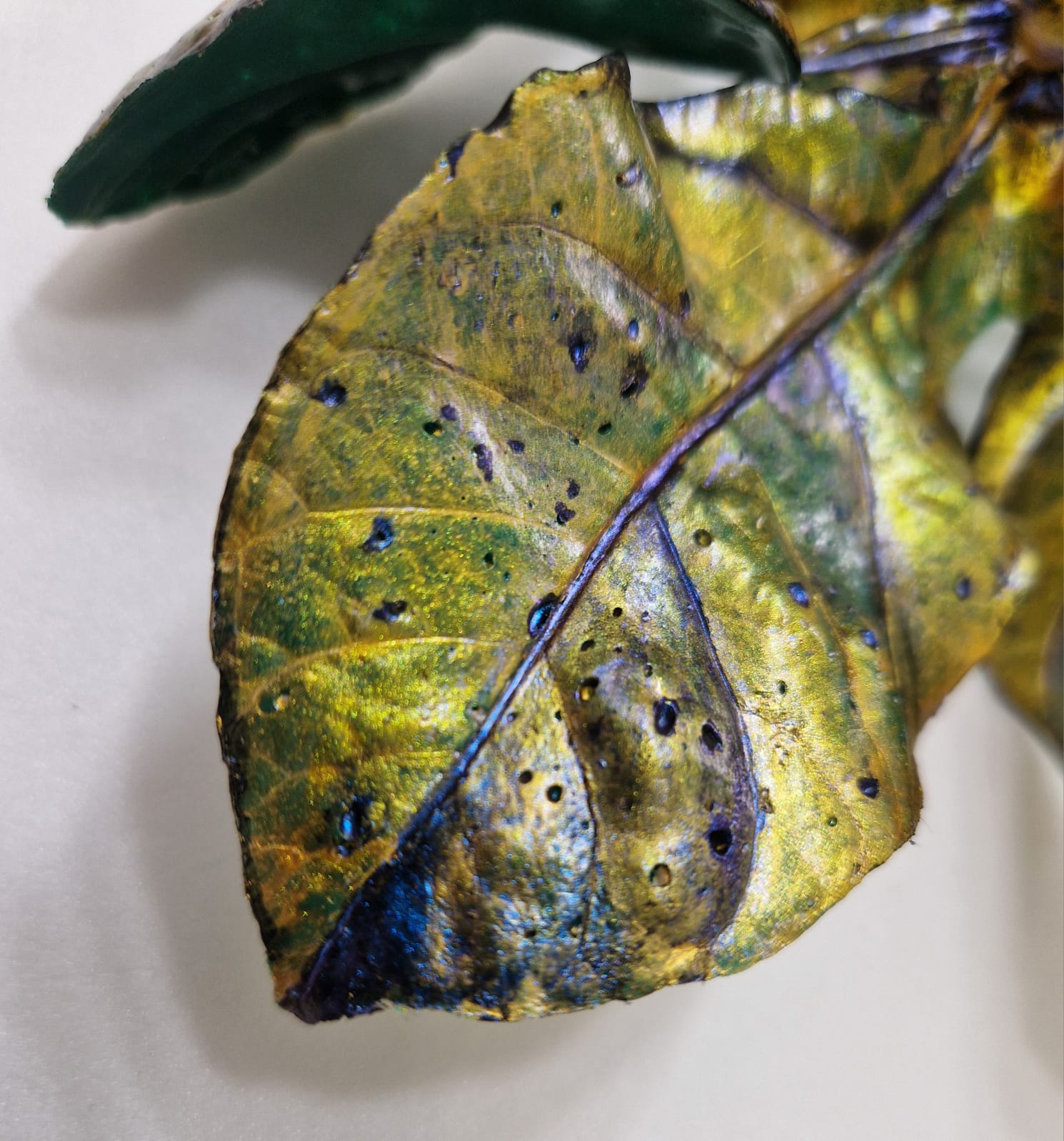 iridescent bright gold/purple pigment,