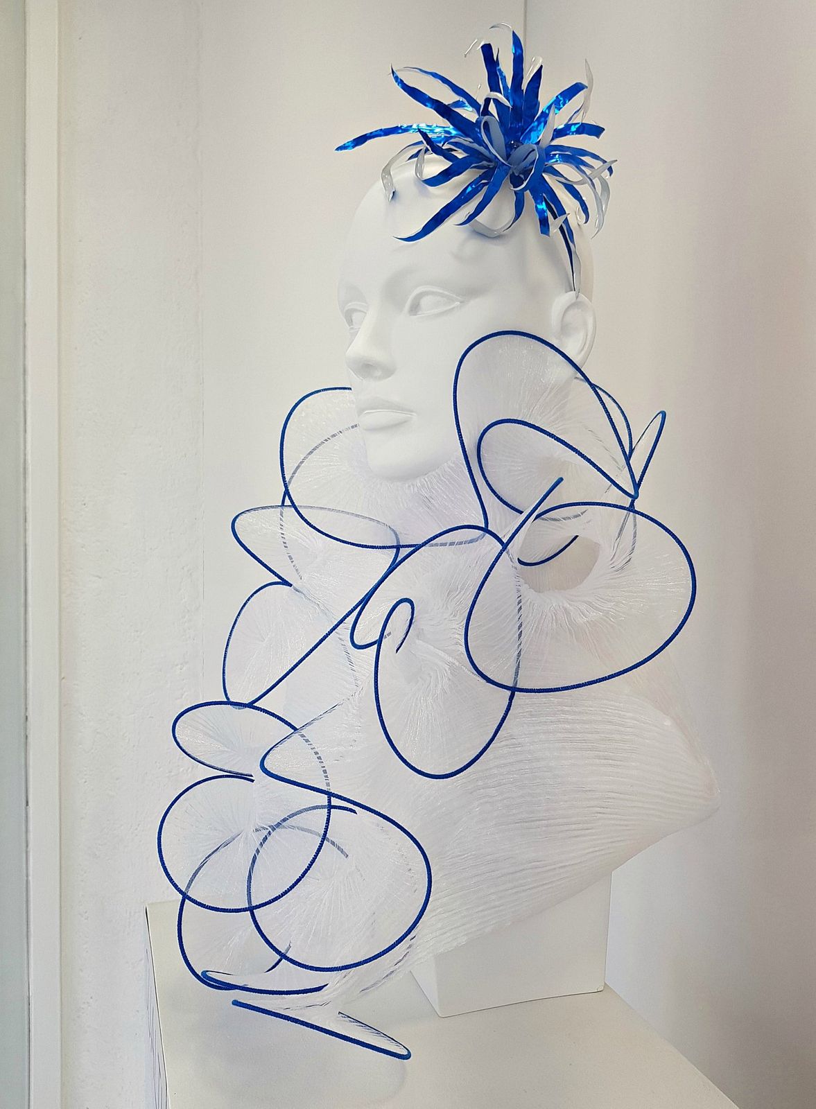 transparent/blue headpiece
